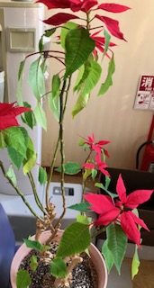 先日、歯医者さんに行ったら、私がここのポインセチアを気に入っているのをご存知の歯科衛生士さんが、「大きめの鉢に植え替えたら葉が枯れて来てしまって💦」と事情を話して下さいました。植物を育てるのも大変ですね^^;